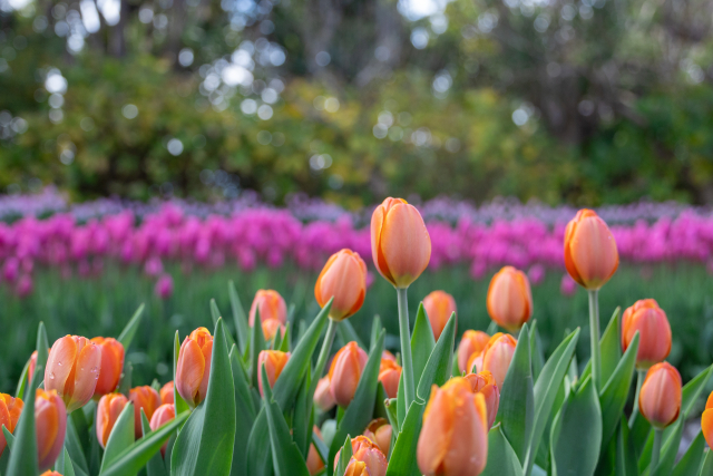 - 誕生日恋人には赤(愛の告白)や紫(不滅の愛)、友人にはオレンジ(照れ屋・親しみ)やピンク(幸福)が喜ばれます。誕生花の色のチューリップがあれば、それを選ぶのも素敵です。