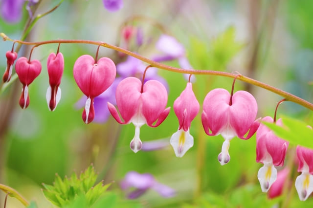 また、「タイツリソウ(ケマンソウ)」には「従順」という意味のほかに、「失恋」や「冷めかけた愛情」といった意味が含まれることがあります。ハートの形をした花がぶら下がって咲く姿は可愛らしいですが、見方によってはハートが割れてしまっているようにも見えることから、終わってしまった恋を連想させます。